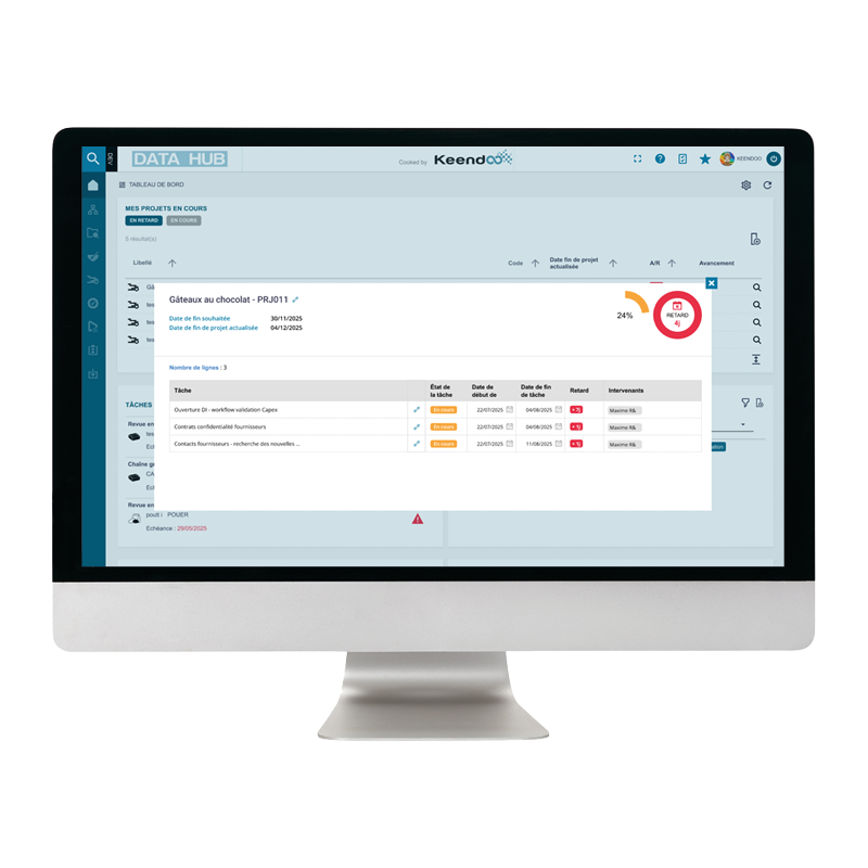 Concrètement, neuf services collaborent sur les projets de développement produit dans le module de gestion de projets produits Keendoo : marketing, commerce, R&D, qualité, juridique, achat, industriel, contrôle de gestion, supply et production. Chacun a une meilleure vision des tâches et des plannings.